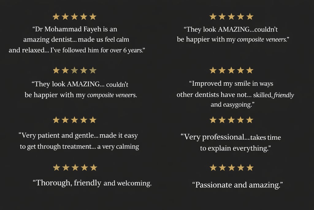 Dr Mohammad Fayeh is the principal dentist and founder of Smilevate, with a strong passion for cosmetic dentistry and smile transformations.
